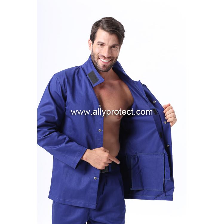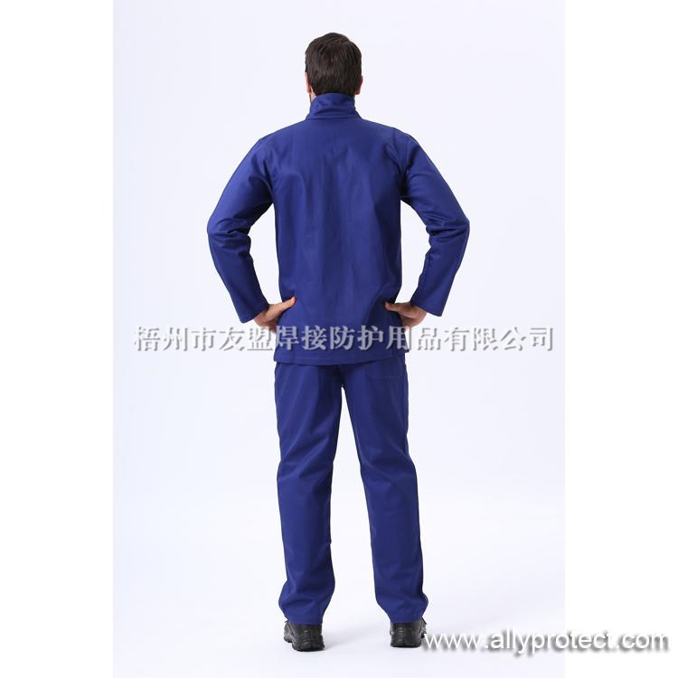 - 產(chǎn)品描述: 藍(lán)色防火阻燃服,可水洗不縮水,推薦適用于燒焊、鑄造、化工、石油、機(jī)電等有火焰或火警的危險行業(yè)。